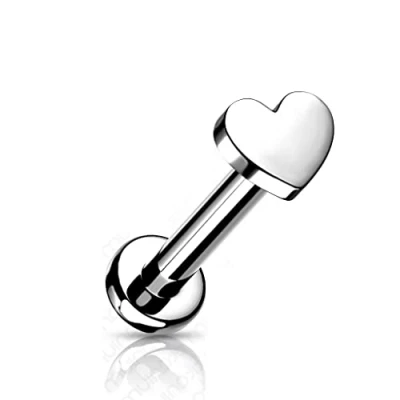 PiercedOff Titanium Steel Labret with Internally Threaded Love Heart Thickness 16GA (1.2mm) / Length 6mm Size 3mm
