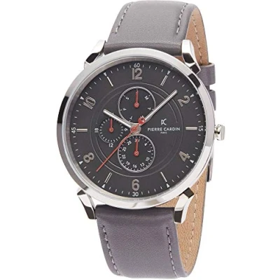 This Pierre Cardin Pigalle Boulevard Multi Dial Watch for Men is the perfect timepiece to wear or to gift. It's Silver 44 mm Round case combined with the comfortable Grey Leather watch band will ensure you enjoy this stunning timepiece without any compromise. Operated by a high quality Quartz movement and water resistant to 3 bars, your watch will keep ticking. This sporty and clasical watch is perfect for every occasion! -The watch has a calendar function: Day-Date, Luminous Hands, 24-hour Display High quality 21 cm length and 21 mm width Grey Leather strap with a Buckle Case diameter: 44 mm,case thickness: 8 mm, case colour: Silver and dial colour: Grey