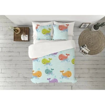 Pierre Cardin Whales Duvet Cover Set White 90 Bed 3 Pieces