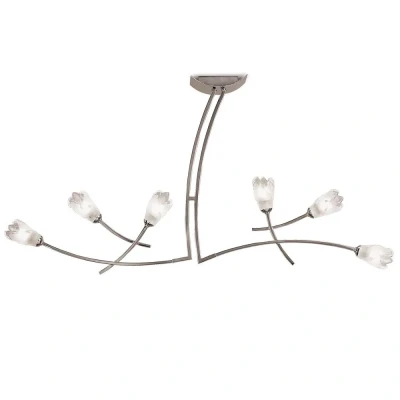 Enhance your space with the Pietra Linear Pendant 2 Arm 6 Light in Polished Chrome. This sleek design features a frosted clear shade and is dimmable, providing versatile lighting options perfect for any setting.
