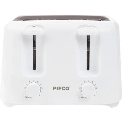 PIFCO® Essentials White Toaster 4 Slice Dual Control with 6 browning Levels & Anti Jam Function Easy to Clean Removable Crumbs Tray 1400W