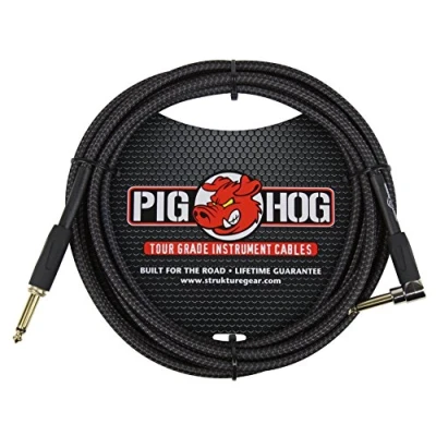 Pig Hog PC H10BKR 1/4" Right Angle to Black Woven Guitar Instrument Cable, 10 Feet