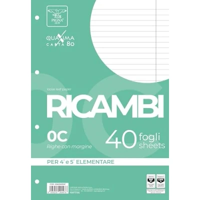 Pigna 00629030C Unreinforced Replacement Part 0C Line Style 4th and 5th Grade Ruled Paper 80gsm Pack of 40 Sheets