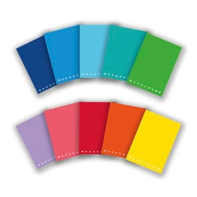 Pigna Monocromo A5 Notebooks (14.8 x 21 cm), 0Q Ruling, 5 mm Squares, Margin, Assorted Colours, Pack of 10