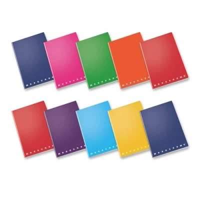 Rigatura: quadretto 5 mm; No Margin Cover: PP Monocolore Internal: 80 gr, FSC certified paper Plain Cover 8 assorted colours inside the pack