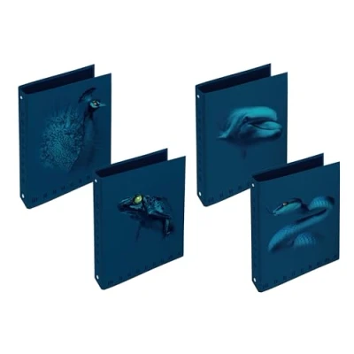 Monochrome Blue Ring Binder Four ring locking mechanism with 30 mm diameter F.to 27 x 32 cm, ideal for A4 paper Assorted lids Pack of 5 ring binders
