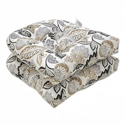 Pillow Perfect Outdoor/Indoor Dailey Pewter Tufted Seat Cushions (Round Back), 19" x 19", Black 2 Count