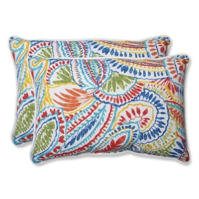 Pillow Perfect Paisley Indoor/Outdoor Accent Throw Pillow, Plush Fill, Weather, and Fade Resistant, Large Lumbar 16.5" x 24.5", Blue/Multi Ummi, 2 Count