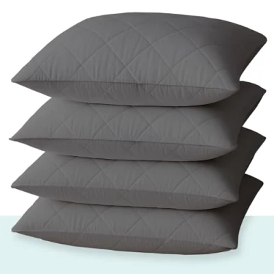 Pillow Protectors 4 Pack, Grey, Machine Washable Quilted Covers with Zipper Closure, Breathable, Allergen Protection, Dust & Mite Proof, 48 x 74 cm