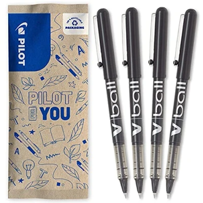 PILOT 4 V Ball 05 Rollerball Pens Liquid ink for smooth and precise writing Quick drying Black Fine tip