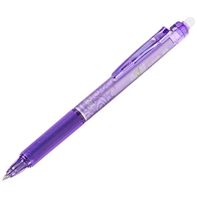 AmazonPilot Frixion clicker retractable rollerball pen Retractable gel rollerball with integral eraser Write, delete and repeat with the same pen Available in violet colour Comfortable rubber grip. 0.5mm nib; smooth gel ink