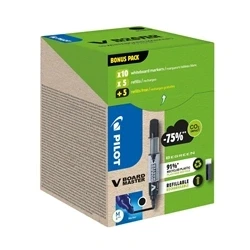 Introducing the Pilot Greenpack V-Board Master Whiteboard Marker, designed for convenience and sustainability. This innovative product comes in a pack of 10 markers along with 10 refills, making it the ideal choice for enhancing your writing experience while minimising your environmental footprint.