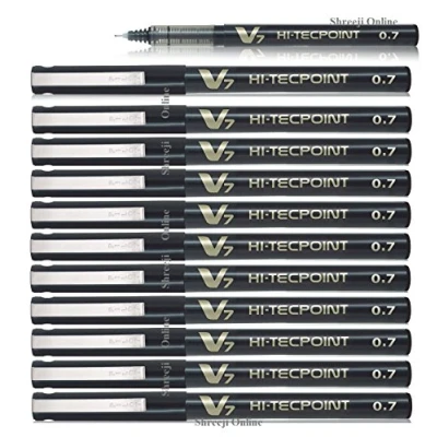 Pilot V7 Hi Tecpoint Liquid Ink Rollerball Pen 0.7mm Tip 0.5mm Line Black (Pack 12)