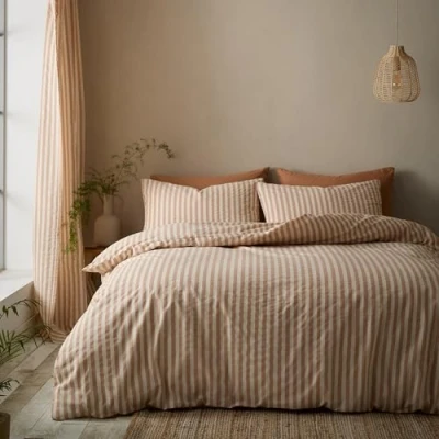 Pineapple Elephant Cotton Rich Woven Stripe Super King Duvet Cover Set with Pillowcases Clay