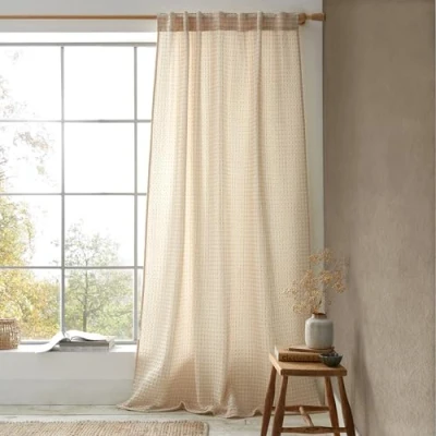 Slot Top Header: Easy Installation for pole rails. Waffle Weave: Offering both softness and warmth Allows Natural Light: Let's in the outdoor light while maintaining a sense of privacy. Lightweight: For easy durability. Voile Curtain Panel- 140x183 cm 100% Polyester Hand Wash Only. This inspired collection of eclectic designs is a fusion of influences from across the world with a modern interpretation of artisan motifs and timeless textures.
