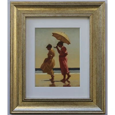 Framed print titled 'Pink and Saffron' by artist: Jack Vettriano Chunky high quality 'antique gold/distressed silver' colour frame Overall size including frame: 13" x 11" - 33cm x 28cm Actual image size: 7" x 5" - 18cm x 13cm Arrives ready to hang on the wall.
