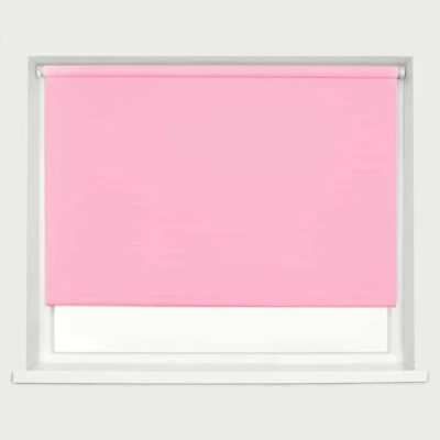 Pink Blackout Roller Blind Metal Fittings Trimmable UV Protection Thermal Properties Premium Fabric Home Office Bedroom Kids Room Child Safe Easy Fit 120cm Width x 160cm Drop