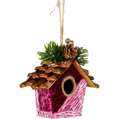 General description Perfect addition to any tree, wreath, or garland, the Pink Birdhouse is designed for easy placement with a sturdy hanging loop. Hang it with pride on your tree or in any other location you choose, and watch as it catches the light, shimmering and adding a touch of magic to your holiday display.