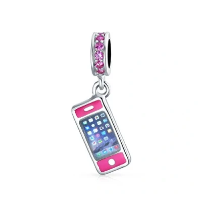 Pink Cellular Cell Mobile Smart Phone Dangle Charm Bead For Women Teen Enamel .925 Sterling Silver Fits European Bracelet