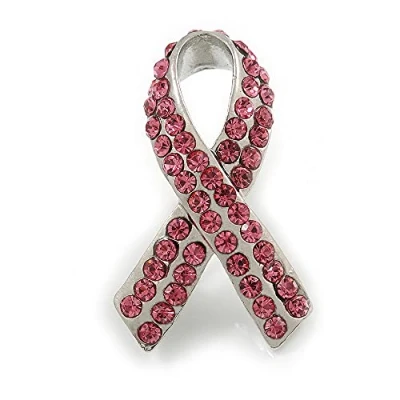 Pink Crystal Breast Cancer Awareness Ribbon Pin in Rhodium Plating 37mm Length