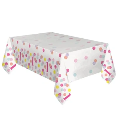 Pink Dots 1st Birthday Table Cover (137cm x 213cm) Charming Rectangular Plastic Tablecloth Perfect for Your Little's Celebrations 1 Pc, 54" 84"