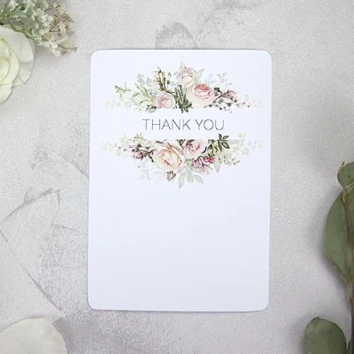 Pink Roses & Greenery Premium Wedding Thank You Cards Pack of 10. Gifts, Card with Envelopes. Notes (18 0011)