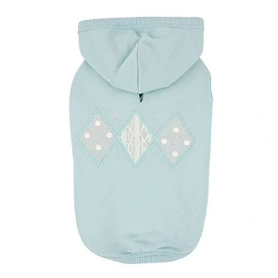 Solid sleeveless hoodie Decorated with argyle appliqué on the back Comes ready with a leash hole Size: X-Small: 8.3" Neck, 10.6" Chest, 6.7" Body Length