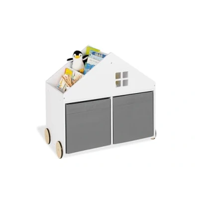 Children's bookcase with wheels 'Hus' with 4 tiered and 2 rectangular compartments and 4 rubberised wooden wheels. Made from MDF: painted white, dimensions W 74 x D 40 x H 69 cm, weight 13.5 kg, FSC certified (FSC-C120795) On the roof, i.e. the top of the bookcase for children, there are 4 tiered compartments. Together with the 2 rectangular compartments, the shelf offers plenty of storage space for your little one's favourite books The modern design in house shape makes the bookcase a real eye-catcher in any child's room. Thanks to the rubberised wheels, the children's shelf can be easily moved back and forth, so that it can also be pushed into other rooms The children's storage rack is suitable for both girls and boys and is recommended for children aged 3 and above. The FSC certified (FSC C120795) wooden children's toy is perfect as a birthday gift Pinolino has been fulfilling children's dreams since 1997, distributing children's furniture, accessories and toys. The German company only uses paints, glazes and oils suitable for children, is a member of the DVSI (German DVSI)