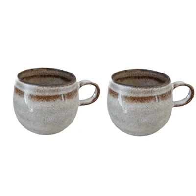 High quality stoneware ceramic. Each piece is unique. Made in Portugal. Dishwasher safe and heat resistant. Microwaveable Sturdy and durable for everyday use, resistant to scratches and cuts, acids and stains, does not absorb odors and flavors Package includes: 2 cups Dimensions: