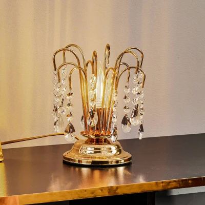 Pioggia table lamp: elegance meets fascinating crystal play The Pioggia table lamp combines modern design with luxurious materials to create an impressive ambience. Made from high-quality metal and elegant K9 crystal glass, it adds a special touch to any room. The golden colour harmonises perfectly with the clear crystal elements, which refract the light in a fascinating way and create a unique play of light and shadow. Ideal for living rooms and dining rooms, the Pioggia sets stylish accents and transforms any room into an oasis of elegance. The combination of modern style and high-quality materials makes this table lamp an indispensable element for sophisticated interiors. The Pioggia is not just a light source, but a work of art that brings the fascination of light to life in your own four walls.