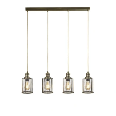 Pipes 4 Light Bar Pendant Antique Brass, Glass Shade, E27