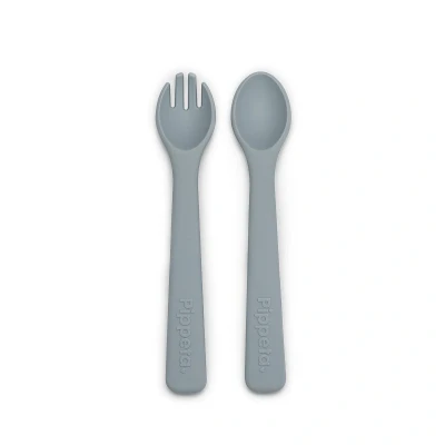 Pippeta Silicone Spoon & Fork Baby Cutlery Feeding Set Toddler Utensils Spoons Forks, Self Utensil Easy Grip Kit for Infant weaning Learning to Use Sea Salt