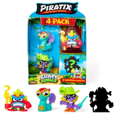 GET A PIRATIX WITH NEON EFFECT: Each 4-Pack includes 4 Piratix figures, 1 of which is a surprise, but you also get a Piratix with a ‘neon’ effect ULTRA RARE CHARACTER: Find the ultra-rare Mask, with a ‘neon’ effect and his coin and accessory - adventure awaits CHOOSE THE COMBINATION OF YOUR CHOICE: Option to choose the specific 4 Pack of your choice; this pack includes the following Piratix: Wormy Digginston, Biko, Marco Lafitte and 1 surprise character Character colours may vary; each figure exists in 2 colours and the selection is random DISCOVER THE PIRATIX WORLD: The Piratix world expands with accessories such as the fortress, can-nons, ships and treasures, which allow you to activate powers, weapons and mechanisms, as well as open doors Feed children's imaginations with the exciting pirate adventures of the Piratix, Manufacturer: Magic Box Toys
