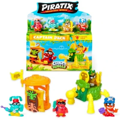 GET ONE OF THE GOLDEN CAPTAINS!: Each Captain Pack includes 4 Piratix figures, 1 of which is a GOLDEN Captain INCREASE YOUR COLLECTION QUICKLY: Expand or start your Piratix collection with this Captain Pack, which includes 4 Piratix figures, 4 "neon" accessories, 1 Jungle Cage, 1 Cannon, 2 exclusive "neon" effect flags and 2 exclusive "neon" effect treasures. There are over 70 Piratix characters to collect, along with their interchangeable accessories ULTRA RARE CHARACTER: Find the ultrarare Wild Mask, with "neon" effect and his exclusive coin; ad-venture awaits! CHOOSE THE COMBINATION OF YOUR CHOICE: Option to choose the specific Captain Pack of your choice; this pack includes the following Piratix: Karrot Lee, Rony Bamboo, Captain Louie y Stampy Pat; character colours may vary; each figure exists in 2 colours and selection is random DISCOVER THE PIRATIX WORLD: The Piratix world expands with accessories such as fortresses, cannons, ships and unique treasures, which allow you to activate powers, weapons and mechanisms, as well as open doors. Feed children's imaginations with the exciting pirate adventures of the Piratix!, Manufacturer: Magic Box Toys