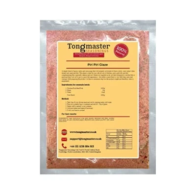 A hot and spicy with herbs and a mild chilli taste , traditional taste of the Algarve Use around 40-50g of glaze per kg of meat. Simple blend of spices, herbs and natural flavours that when dusted onto meat, fish or vegetables, re-hydrate to form a sauce-like glaze with a glossy visual appeal. Run meat under cold water, add to a bag with glaze & shake well to cover contents. Ideal for use with all cuts of chicken, pork and pork ribs. Fantastic as a vegetable stir fry while also complimenting fish, especially salmon and cod.