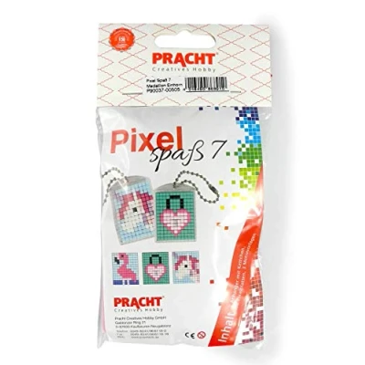 2 pendants to design yourself with small pixel stones, simple plug-in system, no ironing or gluing Design: horse, castle, flamingo Contents: 2 pendants with chains, 3 original size templates and 12 pixel plates The pixel squares are made from 100% recyclable bioplastic and are approx. 2 x 2 mm Great for children's birthday parties as a small gift or party bag, suitable for children aged 6 and up, promotes concentration and fine motor skills, Manufacturer: Pracht Creatives Hobby GmbH