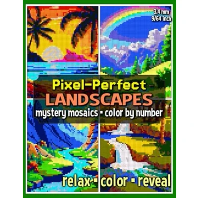 Pixel Perfect Landscapes Mystery Mosaics Color by Number: Art Coloring Book for Adults and Teens (Mystery Mosaic Books)