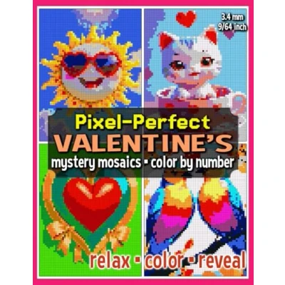 Pixel Perfect Valentine's Mystery Mosaics Color by Number: Art Coloring Book for Adults and Teens (Mystery Mosaic Books)