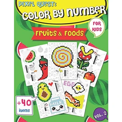 Pixel QUEST COLOR BY NUMBER: Art Fruits and Foods Coloring book (Vol. 2), Activity Books for Kids, Colorful Play