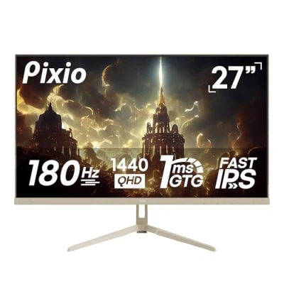 Pixio PX278 Wave Beige 27 inch 180Hz Refresh Rate Quad HD 1440p Resolution AMD FreeSync Fast IPS Panel 1ms GTG Response Time Built in Speakers Gaming Monitor