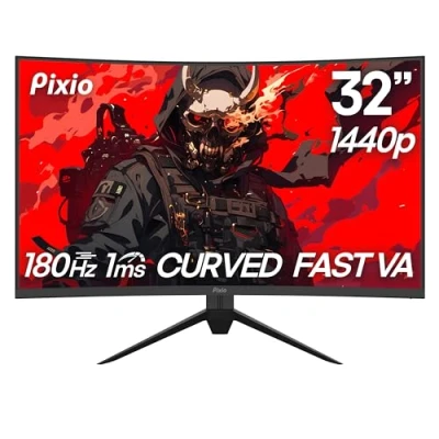 IMMERSIVE 32” 1500R CURVED DISPLAY – Dive into your games with a panoramic field of view that wraps around your vision for deeper immersion and enhanced focus. STUNNING QHD 1440p RESOLUTION – Enjoy razor-sharp visuals and vibrant detail with 2560x1440 resolution, perfect for both gaming and multimedia experiences. ULTRA-FAST 180HZ REFRESH RATE – Experience buttery-smooth motion and reduce motion blur in high-speed gaming environments for a competitive edge. FAST VA PANEL TECHNOLOGY – Rich contrast, deep blacks, and wide viewing angles deliver exceptional color depth and visual clarity. The Pixio PXC328 is a high-performance 32-inch curved gaming monitor that combines a fast 180Hz refresh rate, sharp QHD 1440p resolution, and a 1ms response time to deliver smooth, responsive gameplay. With Adaptive Sync support and a 1500R curved VA panel, it offers an immersive, tear-free visual experience perfect for competitive and casual gamers alike.