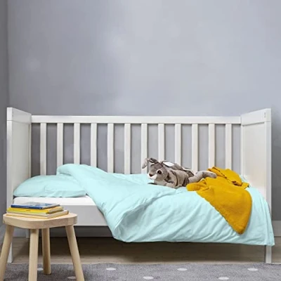 Safe, Gentle & Breathable: Made from safe materials and 100% long-staple combed cotton, this 400 thread count crib duvet cover set provides gentless against the babies’ skin. The compacted yarn technique and minimal artificial processing promote breathability and enhance comfort with its soft fabric. Wick away wetness, to give the babies a cool and healthy sleep experience throughout the night. Minimalistic Smart Fit Design: Designed to give smoothness to babies, this Crib Duvet Cover (100cm x 135cm) features a hidden-button closure and 4 corner ties to put on and remove the duvet easily, creating a comfy sleep experience for them. Additionally, it also includes 1 Pillowcase measuring 40cm x 60cm 100% Pure & Natural Mercerized Combed Cotton: Made from Pizuna's fine yarn technique, this 400 thread count duvet cover crib feature a single dent (4 up-1 down) sateen weave. Mercerized combed cotton make this bedding smooth and lightweight. Pure and natural cotton bedding wrinkles initially, but it softens with each wash and the wrinkling reduces. Pizuna Quality Standard: Rigorous inspections and piece by piece checks are conducted by the Quality Assurance Team at Pizuna. These crib cotton duvet cover sets are OEKO-TEX Certified, free from chemicals, planet-friendly and certified AZO-free, making it soothing even for the most delicate skin. Indulge Responsibly: This duvet cover crib set is BSCI compliant, socially responsible and environment friendly. Use of recycled materials for packaging may add an unpleasant odour that disappears after the 1st wash in warm water. Featuring the Fade Resistant Dyes, it is machine washable on a gentle cycle and tumble dried low. Using bleach may affect the colours. Designed for Better Sleep: Our in-house sleep experts study the user’s sleep behaviour and patterns, resulting in product enhancement and compact packaging. Available globally in multiple colours and sizes, make this duvet covers set the perfect gifting option for your loved ones. Pizuna Cares: Thousands of happy families and media outlets have praised this luxurious bedding. However, if you're unhappy with the product, you can return it for a full refund within 30 days, beyond that our customer care team will be there to assist you as well.