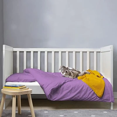 Pizuna 100% Cotton Crib Duvet Cover Purple, 400 Thread Count Long Staple 100x135 cm, Soft Sateen Weave Toddler Bedding Set Include 1 And Baby Pillow Case