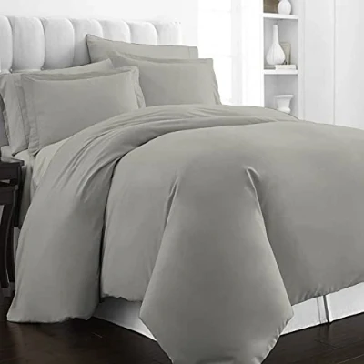 Pizuna 100% Cotton Double Duvet Cover Set Silver, 400 Thread Count Long Staple 200x200cm, Sateen Weave Quilt with Button Closure (Double Cotton)