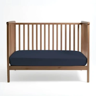 Pizuna 100% Cotton Fitted Crib Sheet Dark Blue, 400 Thread Count Long Staple 40x90 cm, Sateen Weave 12 cm Deep Sheets 1 PC Blue