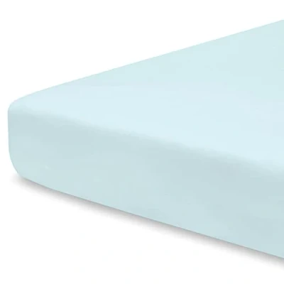 Pizuna 100% Cotton Fitted Travel Sheet Baby Blue, 400 Thread Count Long Staple 60x120 cm, Sateen Weave 14 cm Deep Sheets 1 PC Blue