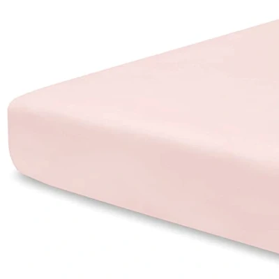 Pizuna 100% Cotton Fitted Travel Sheet Light Pink, 400 Thread Count Long Staple 60x120 cm, Sateen Weave 14 cm Deep Sheets 1 PC Pink