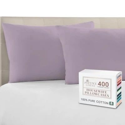 Pizuna 100% Cotton Housewife Pillowcases 2 Pack Lavender Frost 48x74cm, 400 Thread Count Long Staple Combed Pillow Cover, Sateen Standard Pillowcase (Cotton of 2)