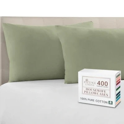 Pizuna 100% Cotton Housewife Pillowcases 2 Pack Light Sage 48x74cm, 400 Thread Count Long Staple Combed Pillow Cover, Sateen Weave Standard Pillowcase (Cotton of 2)