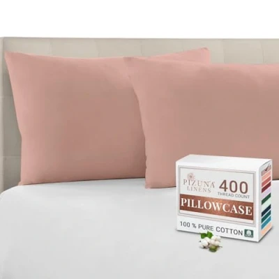 Pizuna 100% Cotton Housewife Pillowcases 2 Pack Misty Rose 48x74cm, 400 Thread Count Long Staple Combed Pillow Cover, Sateen Weave Standard Pillowcase (Cotton of 2)
